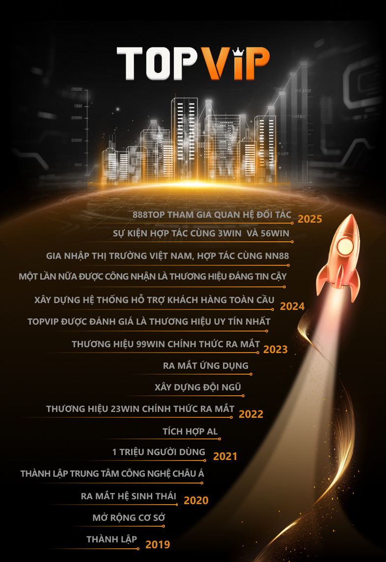 TOPVIP, được thành lập vào năm 2019, là một thương hiệu nổi tiếng được công nhận với danh tiếng hàng đầu trong hai năm liên tiếp. Hiện nay, TOPVIP tự hào sở hữu hơn 2.000 trò chơi hàng đầu và hơn 18 triệu người chơi trên toàn thế giới. Đội ngũ dịch vụ khách hàng luôn sẵn sàng 24/7. Cửa hàng trò chơi của TOPVIP cung cấp nhiều lựa chọn phong phú, bao gồm cá cược thể thao, sòng bạc trực tuyến, xổ số điện tử, đá gà, câu cá, giải độc đắc lũy tiến, v.v., phù hợp cho cả người chơi mới và người chơi giàu kinh nghiệm. TOPVIP cung cấp nhiều chương trình thưởng và khuyến mãi đa dạng để đáp ứng nhu cầu của mọi người chơi sòng bạc. Là một sòng bạc trực tuyến được đánh giá cao tại Đông Nam Á, chúng tôi luôn chú trọng đến uy tín, vì vậy bạn có thể yên tâm rằng mình đang chơi trên một nền tảng rất an toàn và đáng tin cậy, tận hưởng trải nghiệm giải trí đỉnh cao chỉ với một cú nhấp chuột.